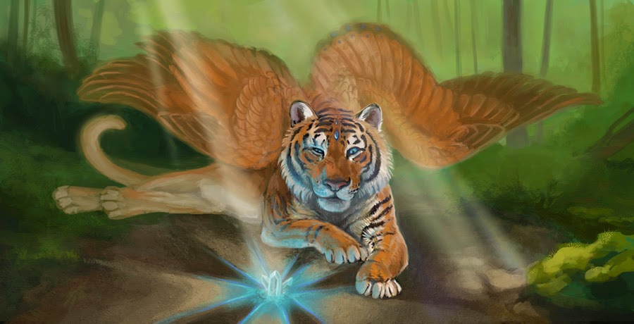 I tried to stay true to the spirit of the original and push it forward. I honestly never intended to do the tiger, forest setting, and all those feathers without any solid references. As such, it was a very, very messy process, which you can check out below. But on the whole, I’m really pleased with how it all came together, and I've written a tiny Sketch Story to go along with it.