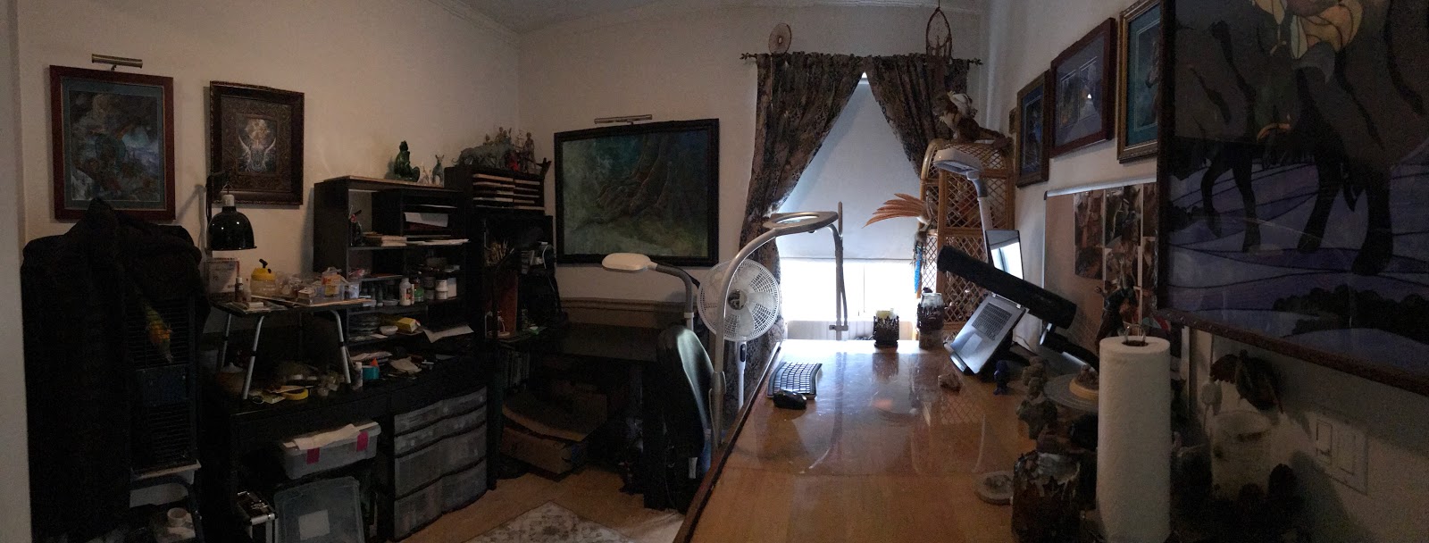 Since I was sharing workspace photos, I figured I would also show you my two other primary workspaces. The first is my art and writing room. The second is my computer area (for general web-browsing, gaming, digital art, scanning, printing, etc.).